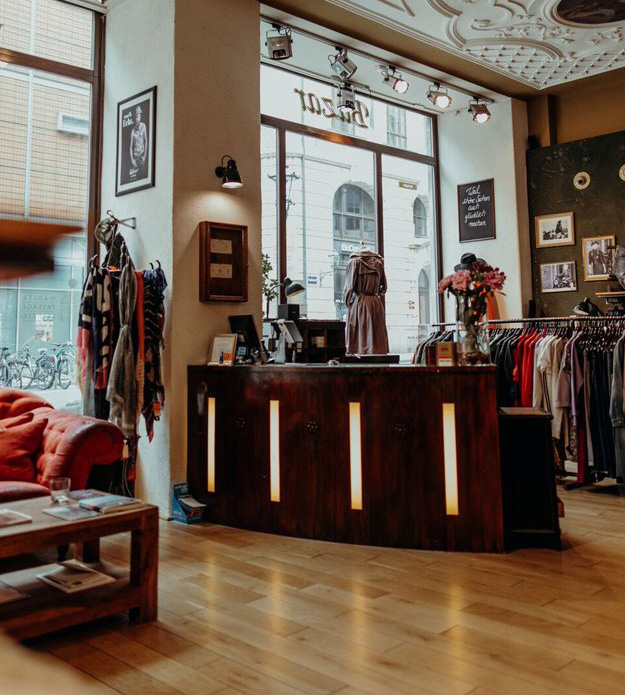Unseren Kunden, Freunden und Partnern stehen wir beratend, mit Humor und Know-How in unserem wunderschönen Ladengeschäft - in der geschichtsträchtigen Mädler-Passage - zur Seite. Mit unserem facettenreichen Marken Portfolio bieten wir ein exklusives Sortiment der Premium und Contemporary Brands wie Vic Matié, Belstaff, Beatrice B., Deus, Luisa Cerano, Ottod’ame und Moma. Denn am Ende des Tages haben wir immer ein Ziel - mit unserer Arbeit zu begeistern - weil schöne Sachen auch glücklich machen.
